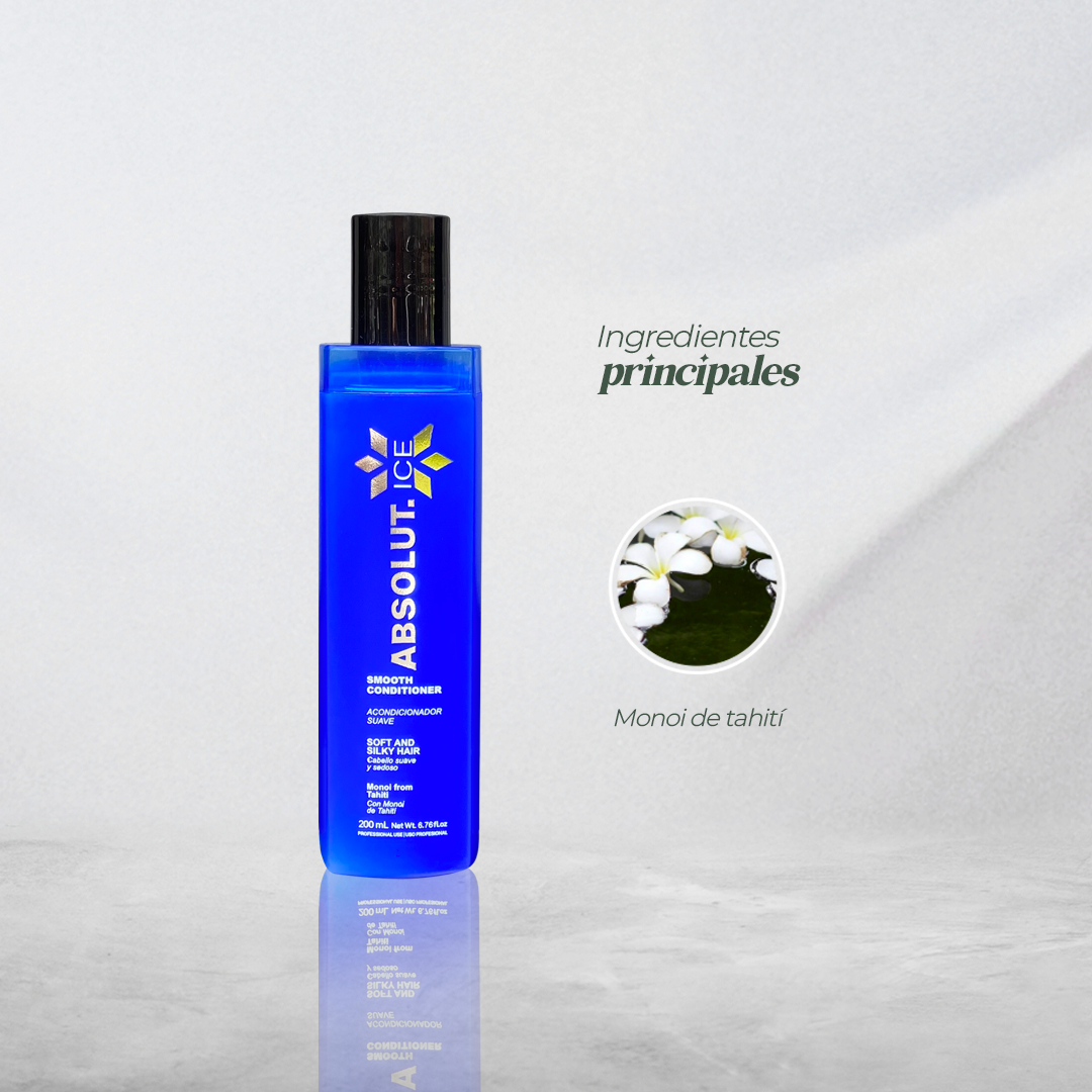 Acondicionador suave, ideal para desenredar el cabello, brindar manejabilidad y dar sedosidad al cabello. Contiene Monoi de Tahití y puede ser usado por cabellos dañados que estén en proceso de recuperación. Compatible para mezclarse con pigmento matizante de la línea Absolut Ice.