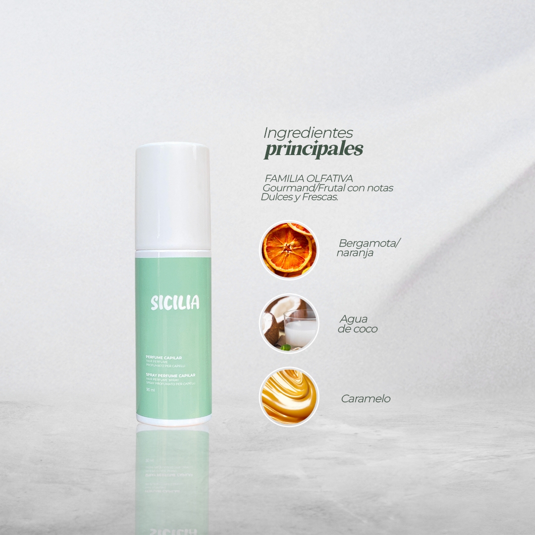 Inspirado en la intensidad, calidez y sensualidad de Sicilia, este Perfume Capilar te transporta al corazón del sur de Italia, donde el sol es generoso, los sabores son intensos y el aire está cargado de dulzura.